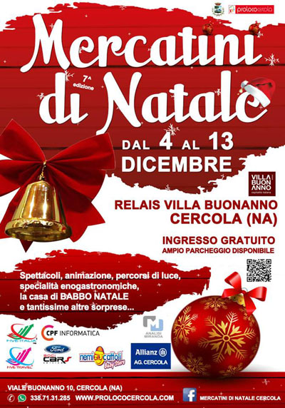 La Pro Loco Cercola con il patrocinio del comune è lieta di presentare i Mercatini di Natale a Cercola.