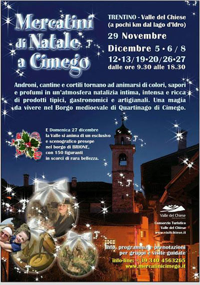 Il comune di Cimego è lieto di presentare i Mercatini di Natale a Quartinago di Cimego.