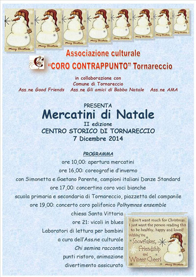 L'Associazione culturale Coro Contrappunto è lieta di presentare i "Mercatini di Natale" nel centro storico di Tornareccio.