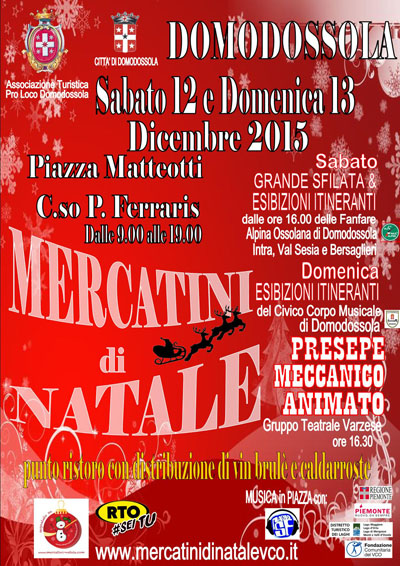 L'evento avrà luogo sabato 12 e domenica 13 dicembre 2015 in Piazza Matteotti e in Corso P. Ferraris a Domodossola, dalle ore 9.00 alle ore 19.00.