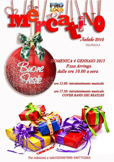 La Pro Loco Sgurgola con il patrocinio del Comune presenta "Mercatino" presso il centro cittadino.