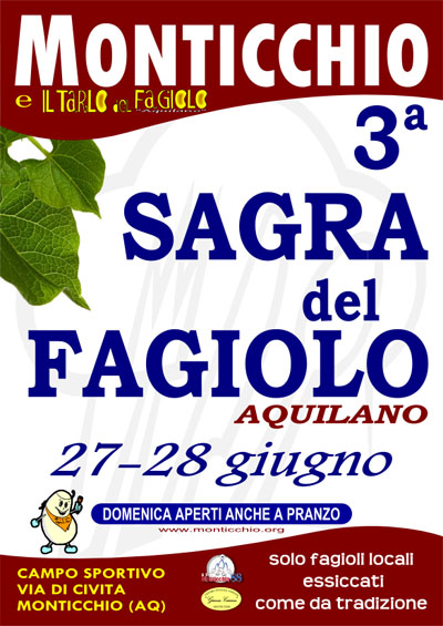 Il comune di Monticchio è lieto di presentare la 3^ edizione di Monticchio e il Tarlo del Fagiolo, la sagra dedicata interamente al Fagiolo.