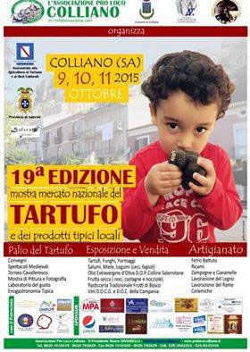 L'Associazione Pro Loco Colliano è lieta di presentare la 19^ edizione della Mostra Mercato Nazionale del Tartufo e dei Prodotti Tipici Locali a Colliano.