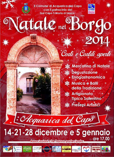 Il Comune di Acquarica del Capo con il patrocinio del Gal Capo di Santa Maria di Leuca presenta "Natale nel Borgo", natale delle tradizioni del gusto e della cultura.