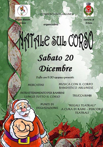 Il Gruppo Giovani Arluno con il patrocinio del Comune di Arluno presenta "Natale sul Corso", organizzato per la giornata di sabato 20 dicembre.