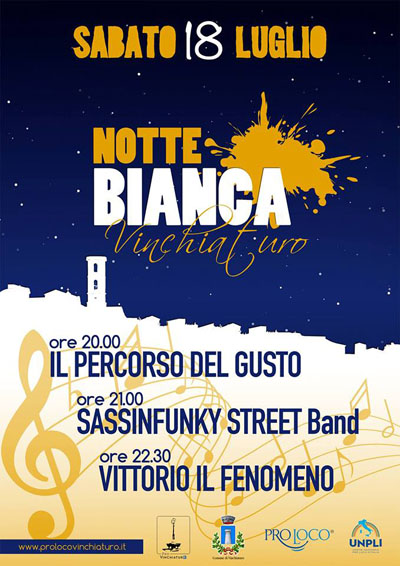 La Pro Loco Vinchiaturo con il patrocinio del comune è lieta di presentare la Notte Bianca a Vinchiaturo.
