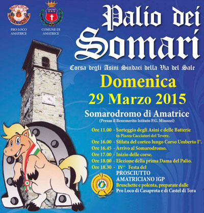 Il Palio avrà luogo domenica 29 marzo 2015 ad Amatrice, presso il campetto della Casa di Riposo Istituto P.G. Minozzi, vestito a Somarodromo per l'occasione.