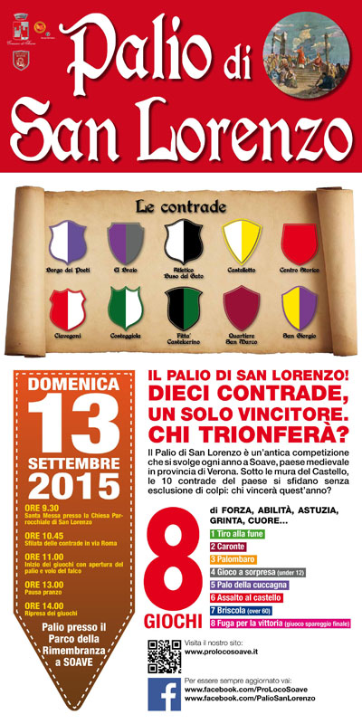 La Pro Loco e la Parrocchia con il patrocinio del comune di Soave è lieta di presentare Il Palio di San Lorenzo a Soave.
