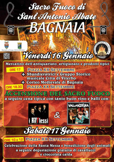 Il Comitato del Sacro Fuoco con il patrocinio del Comune di Viterbo presenta "Il Sacro Fuoco di Sant'Antonio" presso Bagnaia, piccola frazione di Viterbo.