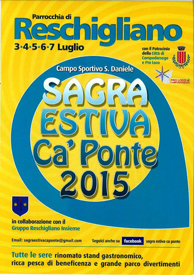 La Parrocchia di Reschigliano con il patrocinio del comune di Campodarsego è lieta di presentare la Sagra Estiva Ca' Ponte 2015.
