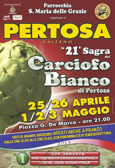 La Parrocchia Santa Maria delle Grazie organizza a Pertosa la 21^ Sagra del Carciofo Bianco di Pertosa.