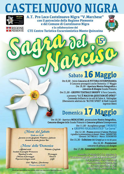 La Pro Loco Castelnuovo Nigra con il patrocinio del comune di Castelnuovo Nigra presenta la Sagra del Narciso.