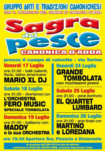 Il Gruppo Arti e Tradizioni Canonichesi con il patrocinio del comune di Canonica d'Adda è lieto di presentare la Sagra del Pesce a Canonica d'Adda.