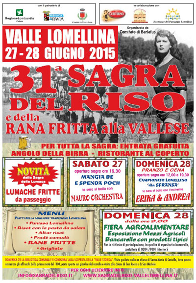 Il Comitato di Barlafus con il patrocinio del Comune di Valle Lomellina presenta la 31^ edizione della Sagra del Riso e della Rana Fritta alla Vallese a Valle Lomellina.