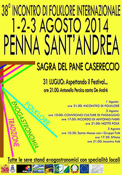Si svolgerà il 1-2-3 Agosto il 38° Incontro di Folklore Internazionale - Sagra del pane casareccio a Penna Sant'andrea (TE) in Piazza Vittorio Veneto.