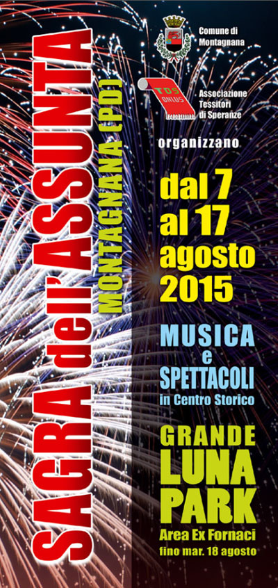 L'Associazione Tessitori di Speranze con il patrocinio del comune di Montagnana è lieta di presentare la Sagra dell'Assunta a Montagnana.