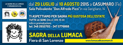L'Associazione Turistica Casumarese in collaborazione con l'Osteria della Lumaca è lieta di presentare la 41^ edizione della Sagra della Lumaca a Casumaro.