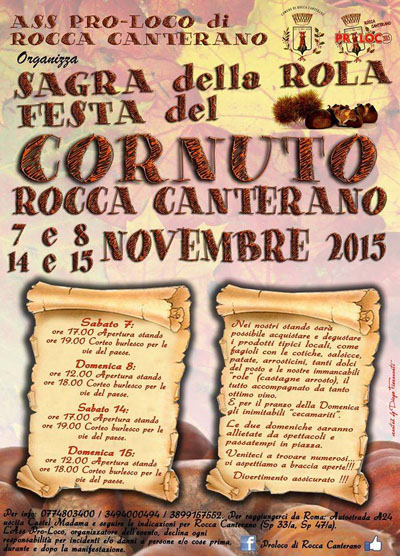 L'Associazione Pro Loco di Rocca Canterano con il patrocinio del comune è lieta di presentare la Sagra della Rola e Festa del Cornuto a Rocca Canterano.