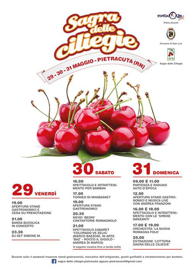 Pietra Eventi con il patrocinio del comune di San Leo è lieta di presentare la Sagra delle Ciliegie a Pietracuta, piccola frazione del comune di San Leo.