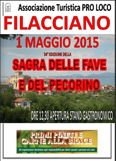 L'associazione Turistica Pro Loco di Filacciano con il patrocinio del Comune è lieta di presentare la 34^ edizione della Sagra delle Fave e del Pecorino a Filacciano.