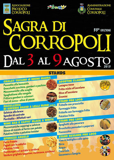 La Pro Loco con il patrocinio del comune è lieta di presentare la 33^ edizione della Sagra di Corropoli nel centro storico di Corropoli.