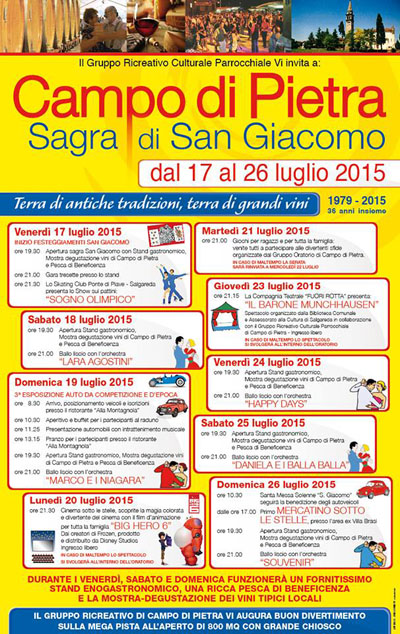 Il Gruppo Ricreativo Culturale Parrocchiale di Campo di Pietra è lieto di presentare la Sagra di San Giacomo, a Campo di Pietra.