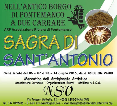 Nell'Antico Borgo di Pontemanco a Due Carrare l'Associazione Riviera di Pontemanco è lieta di presentare la Sagra di Sant'Antonio.