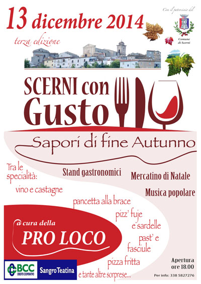 La Pro Loco con il patrocinio del Comune di Scerni presenta la terza edizione di "Scerni con gusto", nell'omonima città in provincia di Chieti.