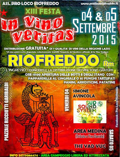 La Pro Loco di Riofreddo è lieta di presentare la XIII edizione di In Vino Veritas.