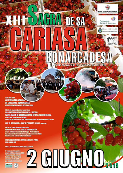 - ore 10.00 – Apertura della Sagra de sa Cariasa Bonarcadesa, con esposizione vendita delle ciliegie;