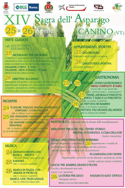 Il Comune di Canino in collaborazione con la Pro Loco è lieto di presentare la XIV Sagra dell'Asparago a Canino.