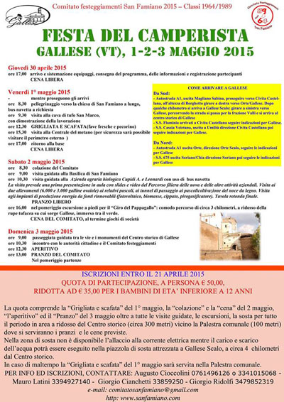 Il Comitato Festeggiamenti San Famiano è lieto di presentare la "Festa del Camperista"a Gallese.