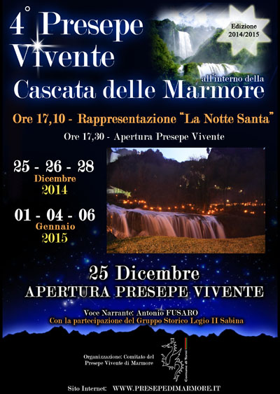 L'evento si aprirà alle ore 17,00 del 25 dicembre 2014 con la rappresentazione dal titolo "La Notte Santa", narrata da Antonio Fusaro e con la partecipazione del Gruppo Storico Legio II Sabina.