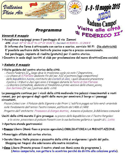 Il raduno avrà luogo dall'8 al 10 maggio 2015 a Jesi, presso l'area sosta camper in Via Zannoni.